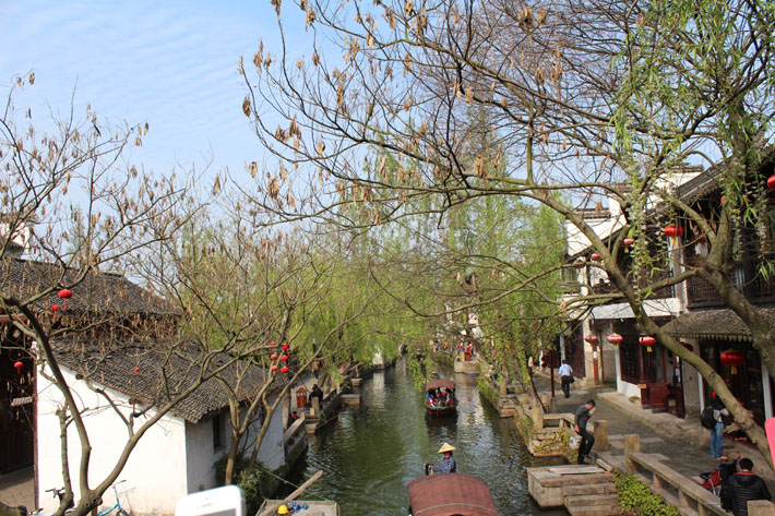 集合而歸,靠著椅背才覺得有點(diǎn)疲憊。車沿著林蔭小路,讓我們有機(jī)會(huì)在路途中還能親近那一抹綠。下一站是大家一直期待的水鄉(xiāng)周莊,短暫的車程之后,我們的大隊(duì)伍浩浩蕩蕩的順利了抵達(dá)周莊……